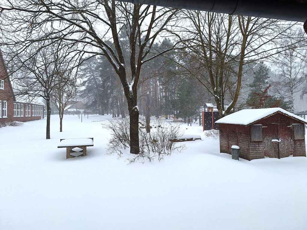 Naturnah gelegen und von alten Bäumen umsäumt – bietet unser schöner Schulhof viel Bewegungsraum zum Toben und Entspannen. Ein Lieblingsort von Anna und Theo: